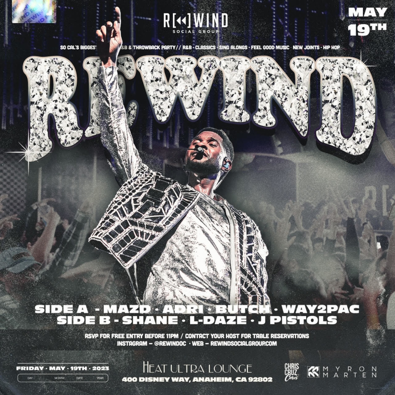 Join Us Every Friday Night For REWIND OC! So Cal's Number 1 Weekly Throwback Party.