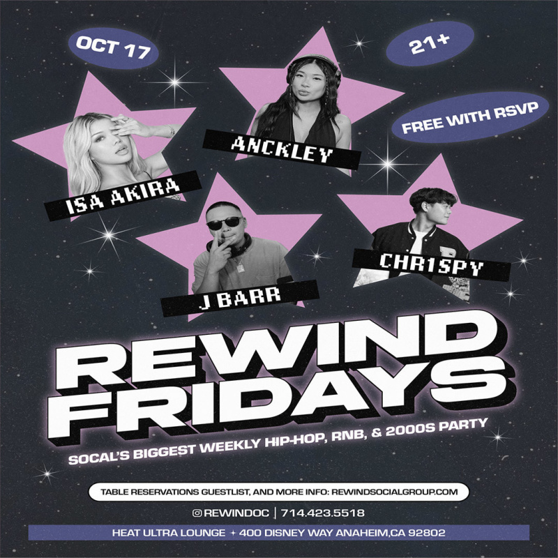 Join Us Every Friday Night For REWIND OC! So Cal's Number 1 Weekly Throwback Party.